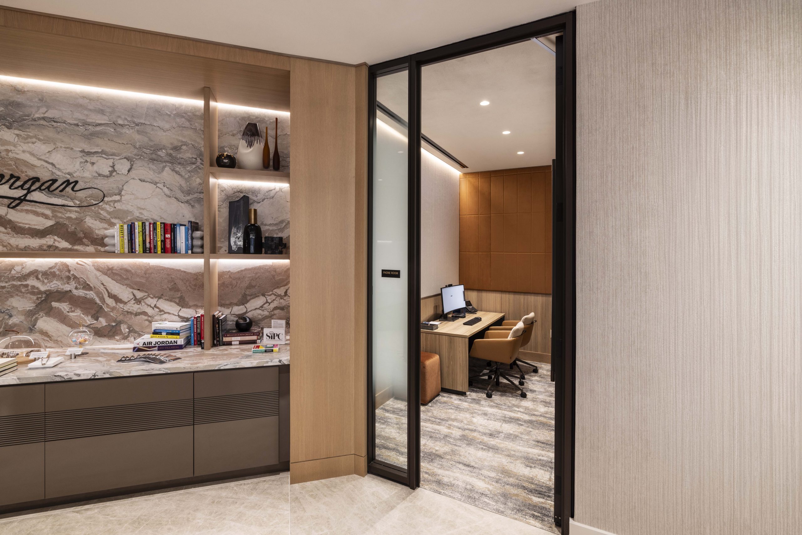 Each space has been carefully crafted to promote connection, flexibility, and well-being, weaving together the natural and the artistic into a cohesive, modern workplace. The result is an environment that both grounds and inspires—celebrating Sarasota’s serene beauty and dynamic cultural pulse, while aligning with Chase’s forward-thinking brand values.