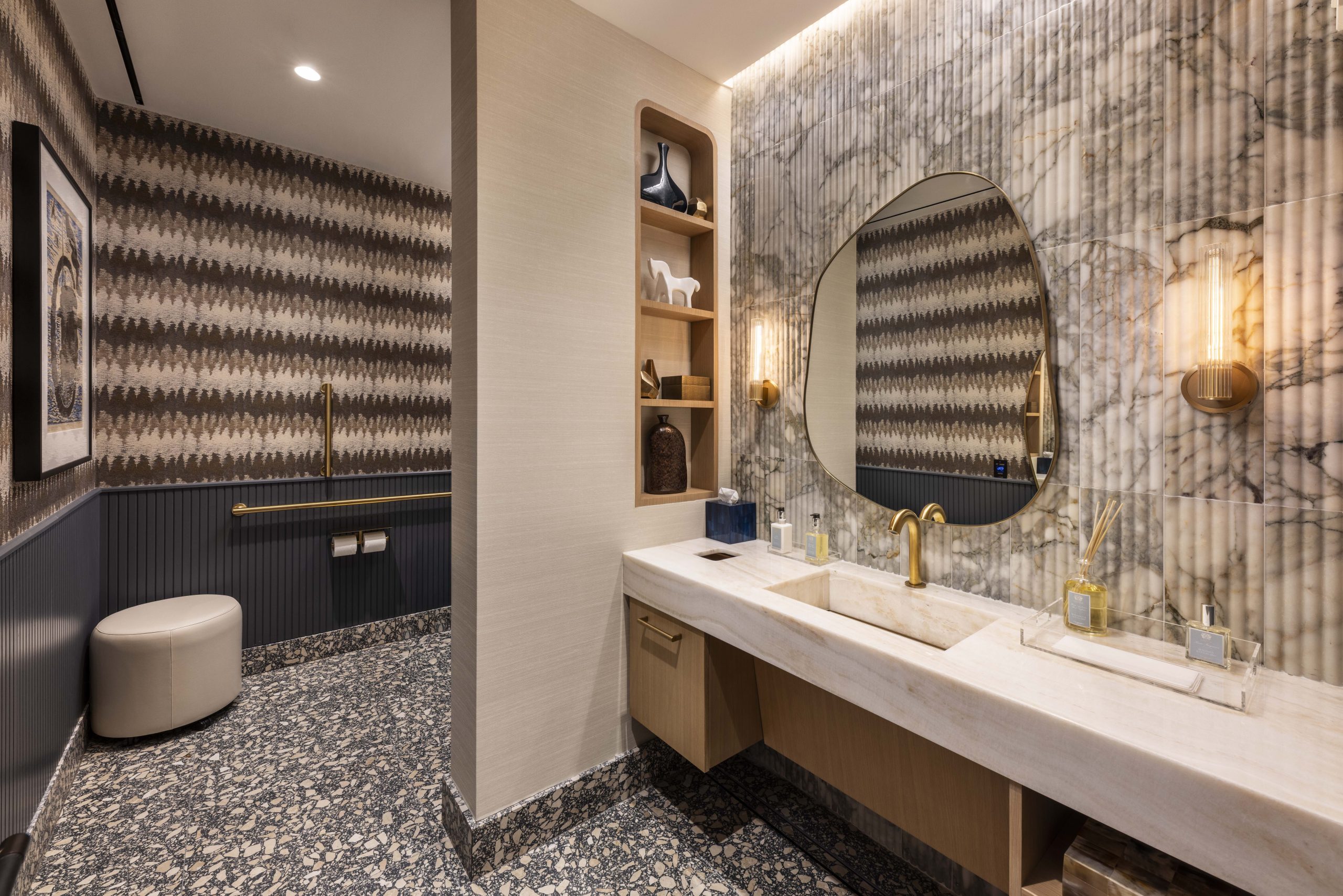 Materiality is key: soft, organic forms flow through the space, complemented by natural stone and warm wood finishes that reflect Sarasota’s coastal landscape. Whimsical design elements—subtle curves, artistic lighting, and playful textural contrasts—evoke the magic of Sarasota’s theaters and performance halls, while curated color palettes mirror the hues of sunrises and sunsets over the Gulf.